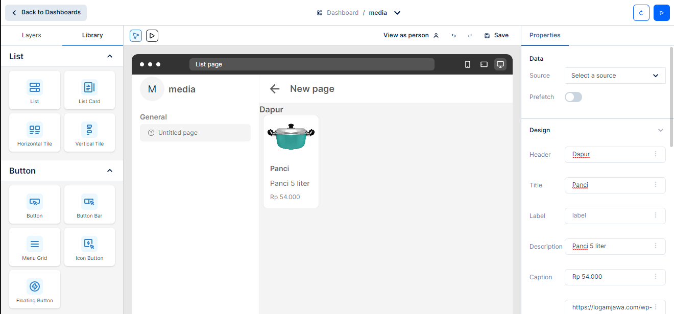 * Image : sumber gambar pada list card, dapat berupa baris pada qore data ataupun link gambar