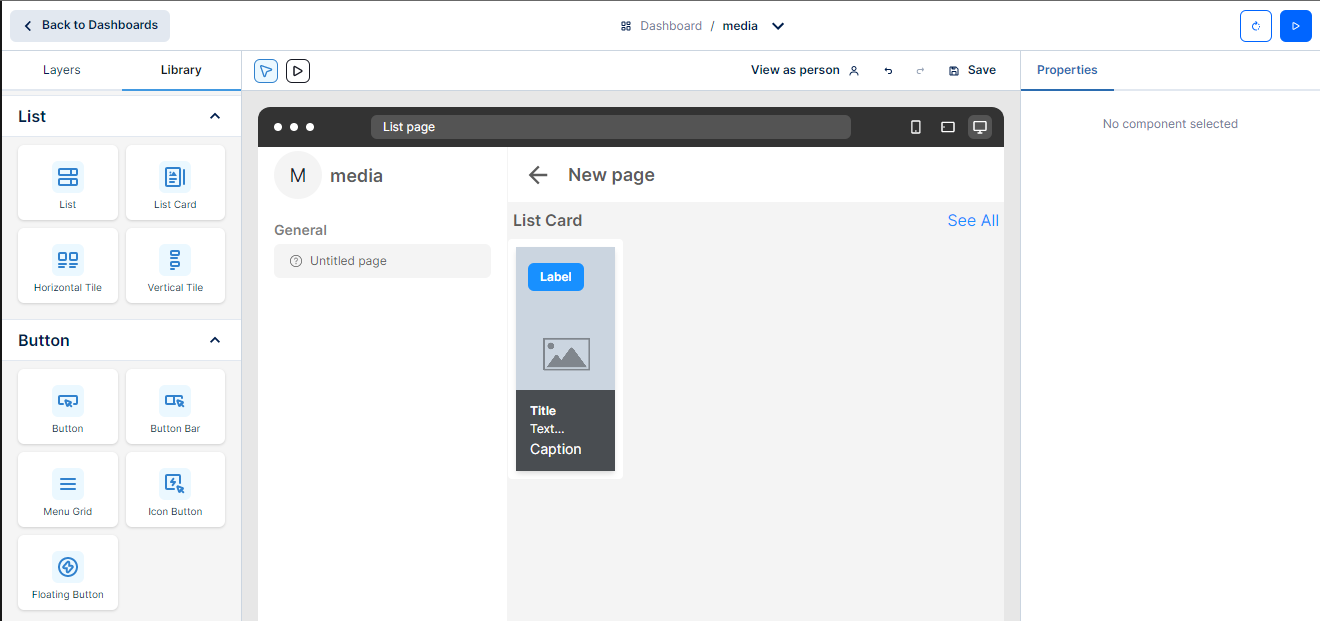 * Pada tab library, di section list pilih list card *component*. Terdapat 2 cara untuk menambahkan *component* ke dalam emulator&#x20;